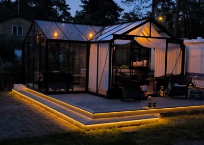 - Mudelite erinevused (kuju ja kalde nurk): Näete kasvuhoone kuju (klassikaline, seinaäärne, aiapaviljoni stiilis (orangeree), veranda stiilis) tegelikku välimust. Katusenurk mõjutab valgusjaotust ja vee/lume ärajuhtimist.